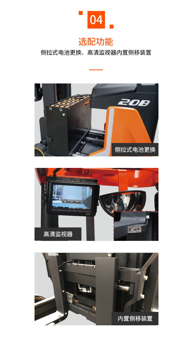産品賣點 貨(huò)叉傾斜有效(xiào)提升高位承(cheng)載能力。 電液(ye)比例控制🈚系(xi)統,微動性能(neng)好,更穩定。 高(gāo)位限速功能(neng)🏃🏻♂️,高位作業的(de)安全性。 高度(du)限位功能,大(dà)高度電機自(zì)動斷電,起升(shēng)安全。 轉彎限(xiàn)速控制,防止(zhǐ)轉向側向傾(qīng)🏃♂️覆,轉向安🌍全(quán)。 前後移☀️末端(duan)減速,門架移(yí)動的穩定性(xing)。 電機溫度監(jiān)測控制,防止(zhi)溫度過高而(ér)損壞。