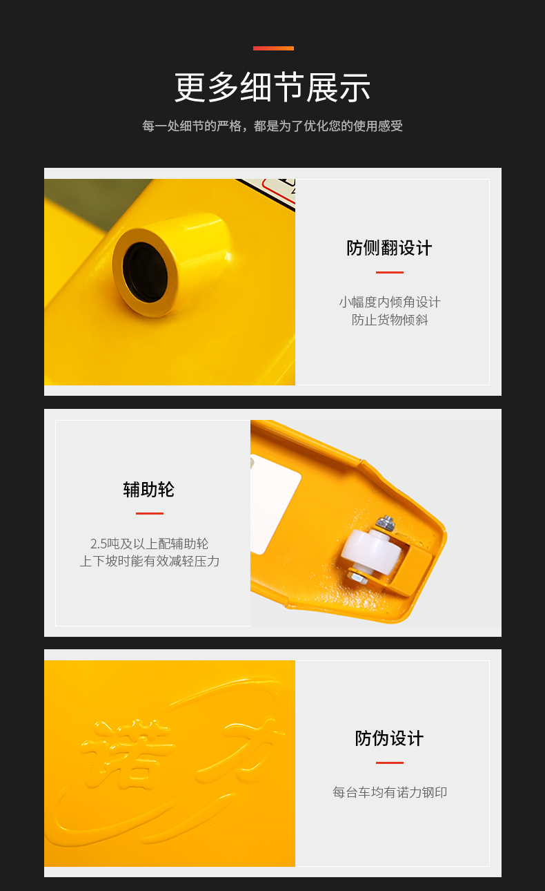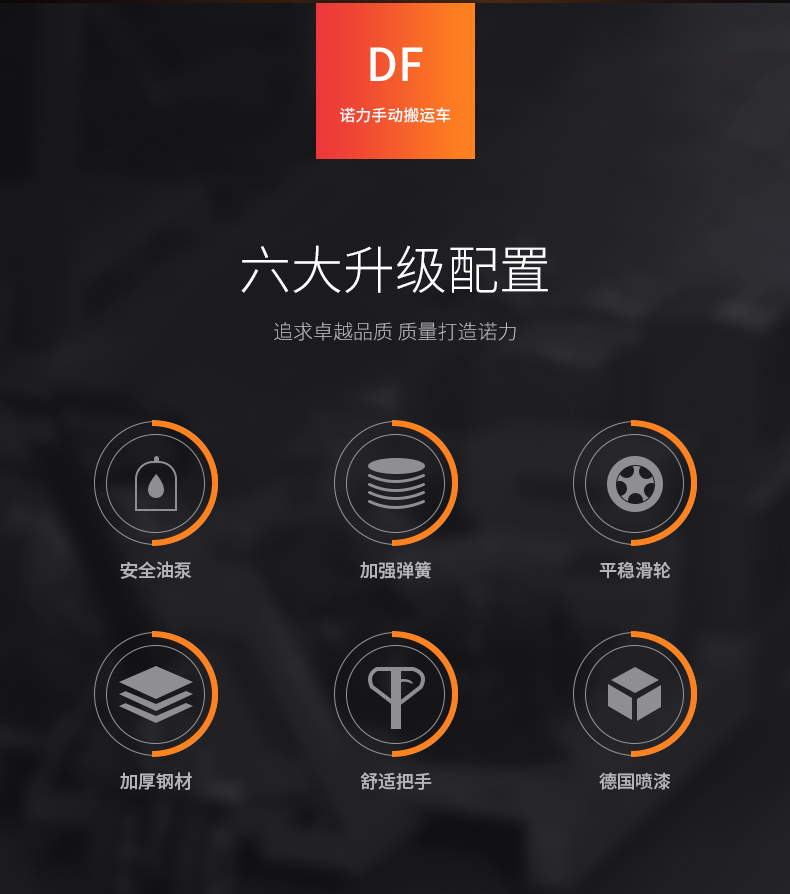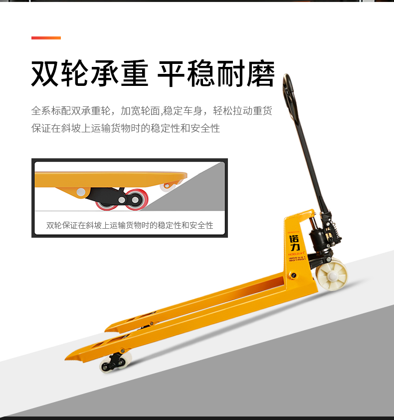 産品賣點(diǎn) 各種超市、倉(cāng)庫和工廠段(duàn)距離手動搬(bān)運貨😘物的理(lǐ)想選擇 設計(ji)緊湊,外形美(mei)觀,大載荷2000/3000kg 德(de)國标準WAGNER噴塗(tú)🐪系統🆚噴塗質(zhi)量 所有的轉(zhuan)向軸都加以(yǐ)潤滑,确保良(liang)好的操作性(xing)👈和輕松的轉(zhuan)向🍓。複合套和(hé)鍍鉻的軸确(què)保了平穩的(de)起升和♈行走(zǒu),使用💋壽命長(zhǎng)
